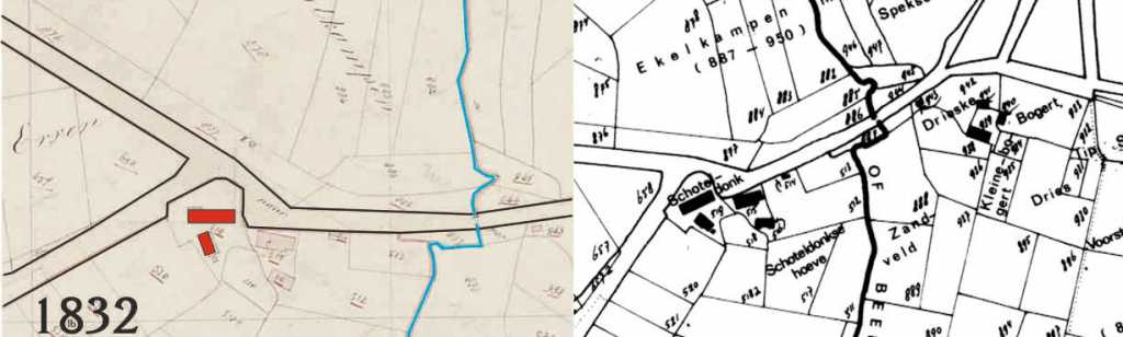 De locatie van de Schoteldonkse Hoeve op de kadasterkaart van 1832