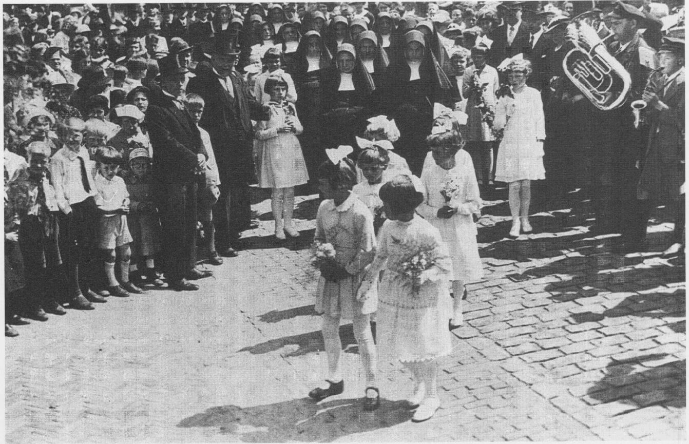 13 juni 1937: op weg naar de Clemenskerk met fanfare en bruidjes