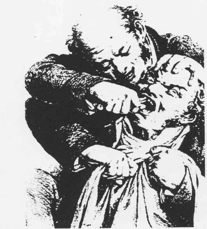 De kiezentrekker volgens een oude gravure; verdoving was nog onbekend en een ontwrichte kaak was geen uitzondering