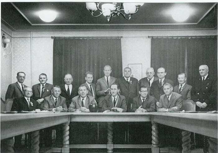 Gemeenteraad van Nuenen, Gerwen en Nederwetten 1962-1966 Voorste rij vlnr: Willem Schuts (oud-wethouder), Jan Kuijten (tijdelijk wethouder), André van Wijk (wethouder/loco-burgemeester), burgemeester Jan Smits van Oyen, Wil Coppieters (loco-secretaris), Koos Nolte, Achterste rij vlnr: Piet van den Hurk, Frans Beks, Jan van de Water, Godfried Schijven, Arnold Poot, Willem Pijs, Adrianus de Rijk, Harrie Raessens, Noud Renders, Piet Pijs (gemeentebode).