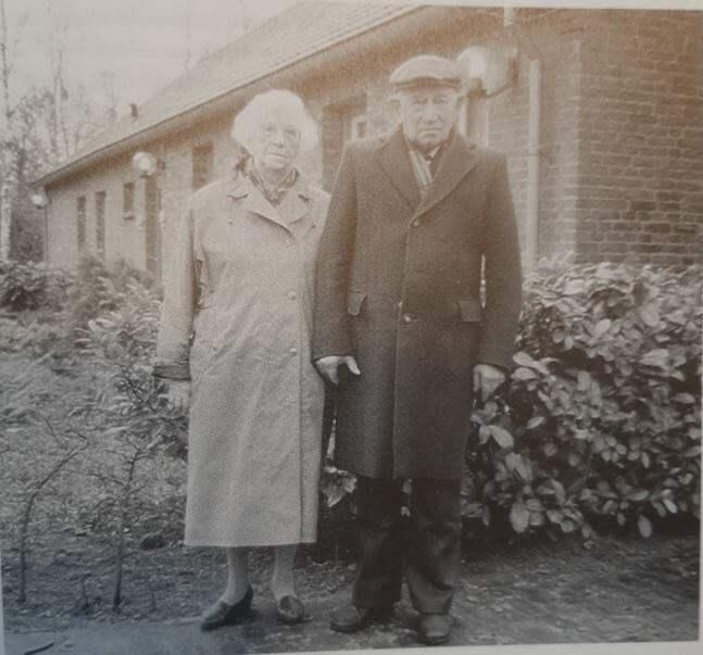 Maria en Piet vóór de boerderij op het Wettenseind waar ze jaren woonden met hun gezin