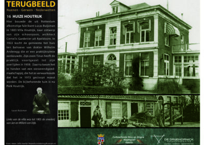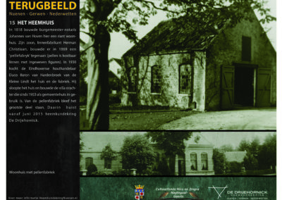 Het Terugbeeldproject is officieel op 23 april 2016 door de ex-burgemeesters Harry Terwisse en Willem Ligtvoet namens Erfgoedvereniging DE DRIJEHORNICK overgedragen aan locoburgemeester Martien Jansen. Het project Terugbeeld kon gerealiseerd worden met medewerking van het Cultuurfonds Nico en Zingra Nagtegaal-Geerts.