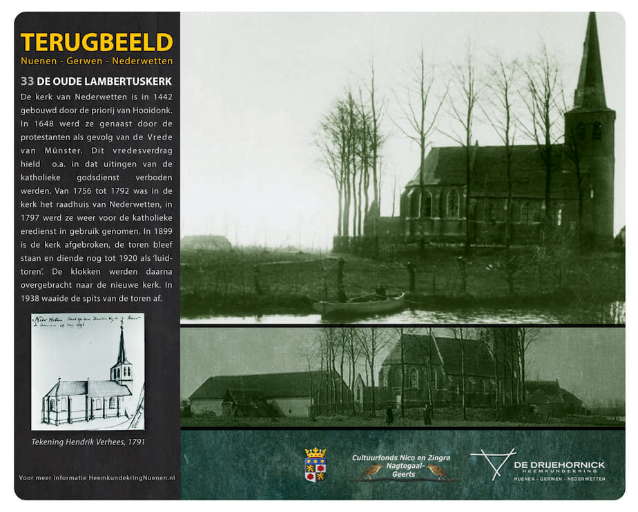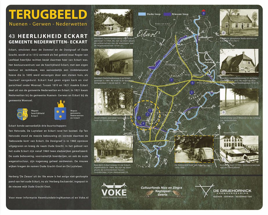 Terugbeeld is een project van Erfgoedvereniging DE DRIJEHORNICK waarmee de aandacht gevestigd wordt op verdwenen monumenten en karakteristieke gebouwen en verdwenen buurtschappen. Op 44 locaties in Nuenen, Gerwen, Nederwetten, het Eeneind en Eckart (uit de periode Nederwetten-Eckart als één gemeente) markeren informatiezuilen de plaatsen waar in het verleden een belangrijk of markant gebouw heeft gestaan. Drie Terugbeeldpanelen geven informatie over de verdwenen buurtschappen Refeling, Vaarle en ’t Huukske. Zuil 43 is geplaatst nabij herberg Eeckaerde aan de Argonautenlaan in de Eindhovense wijk Oude Gracht-Oost en geeft informatie over de geschiedenis van de voormalige Heerlijkheid Eckart en de gemeente Nederwetten-Eckart (1810-1821).