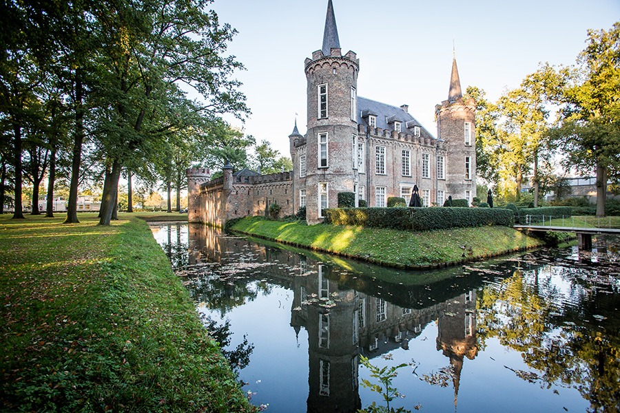 Na de toelichting op kasteel Herkenshage (hieronder in zomertooi) wordt het oude kasteel Raadhuis Dommelrode aangedaan dat nu als gemeentehuis denst doet (onderste foto hieronder).