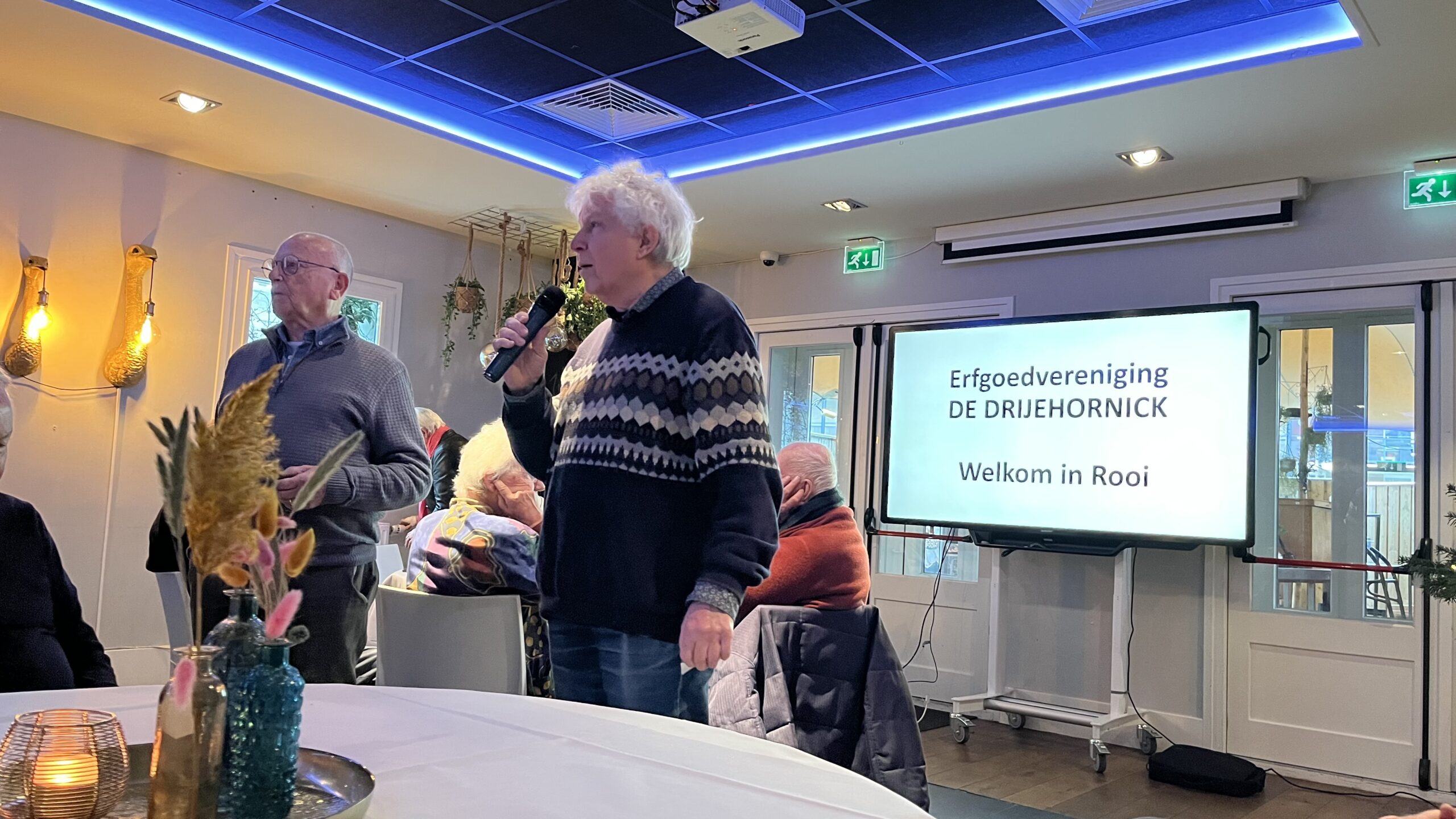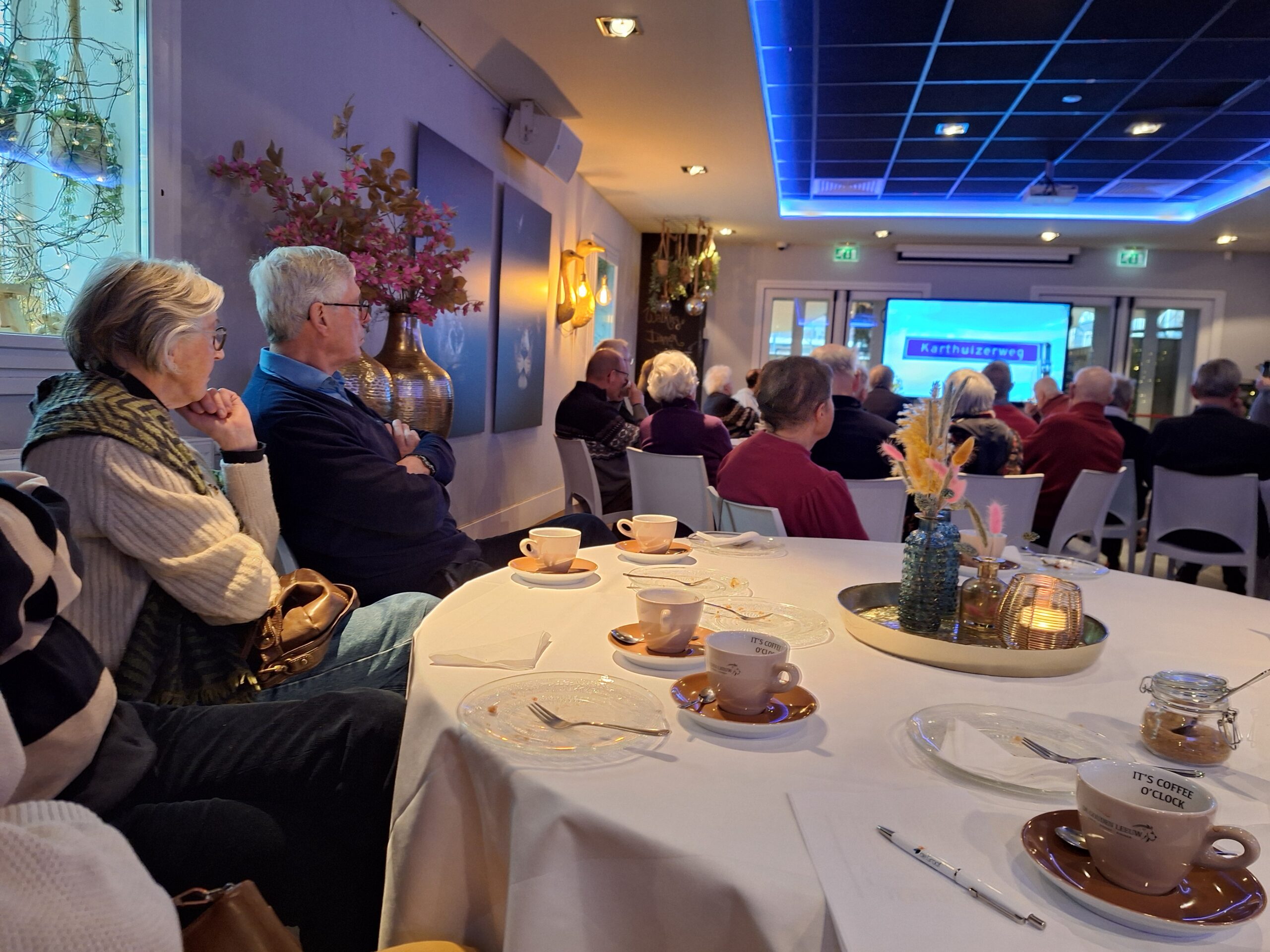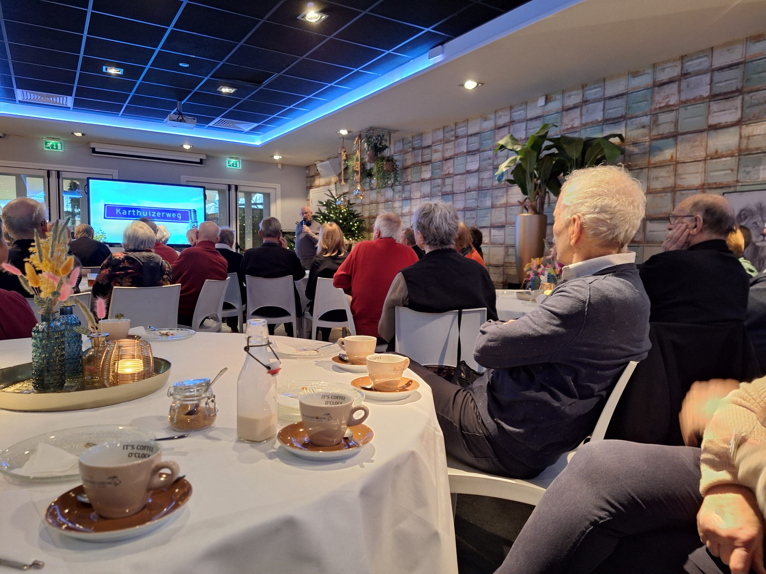 Na een welkomstwoord van voorziter, Roland van Pareren, worden de drie gidsen voorgesteld: Tonnie Donkers, Tilly van den Tillaar en Patrick Sanders. Tijdens de presentatie van Tonnie Donkers worden de koffie en gebak geserveerd.