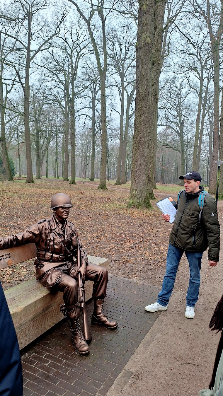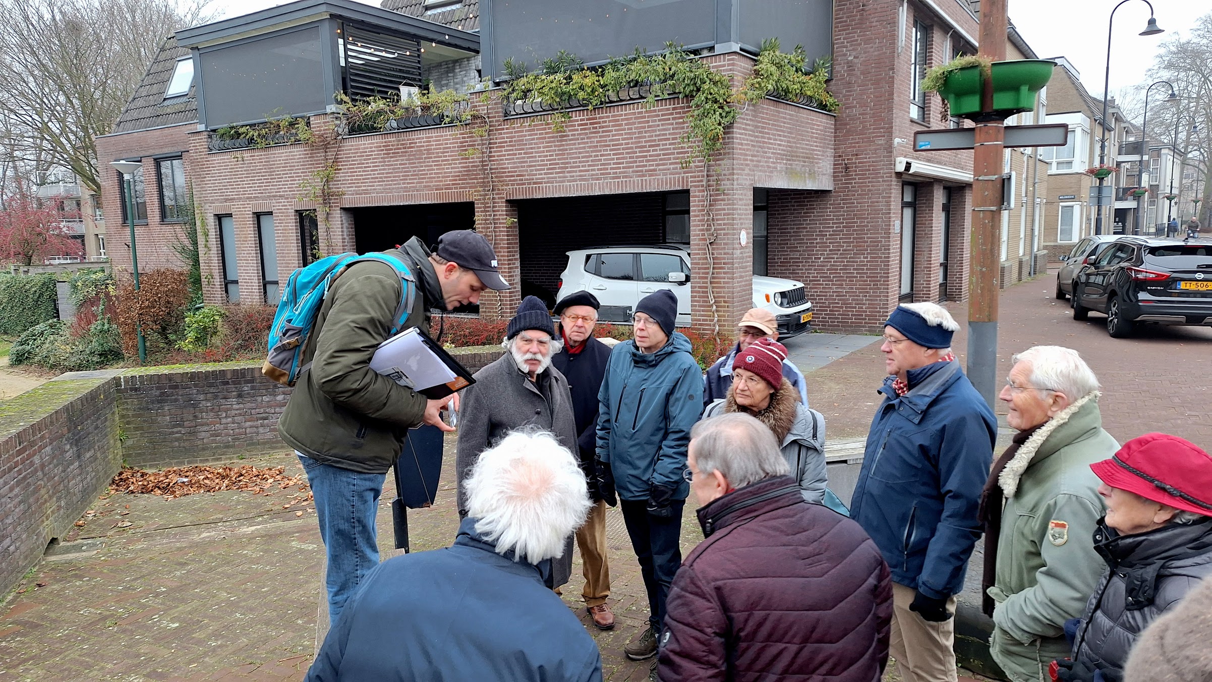 De drie groepen gaan ieder onder leiding van een gids op pad door Sint-Oedenrode. De gidsen vertellen heel enthousiast over hun 'sfad'. Helaas heb ik geen foto van gids Tilly van den Laar.